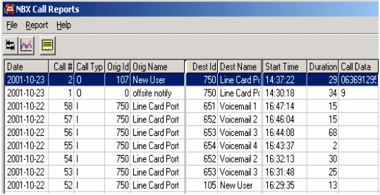 3Com公司的NBX系列網(wǎng)絡(luò)電話交換機(jī)具有強(qiáng)大的記錄、統(tǒng)計(jì)、輸出功能(CDR)?梢詫νㄟ^交換機(jī)平臺呼入呼出的電話、語音信箱留言、自動電腦話務(wù)員的訪問信息都記錄在案。只要通過NBX交換機(jī)所在局域網(wǎng)內(nèi)的任意一臺PC安裝查詢軟件,通過密碼認(rèn)證,就可以從NBX交換機(jī)下載電話記錄數(shù)據(jù)。