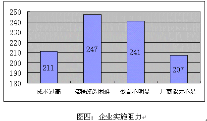 b)流程改造困難,對(duì)這個(gè)困難的擔(dān)心的企業(yè)數(shù)量最多,考慮到國(guó)內(nèi)企業(yè)的現(xiàn)實(shí)管理問題,流程改造必然與現(xiàn)實(shí)的利益發(fā)生矛盾,引起的阻力不可輕視。