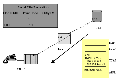 主叫用戶拔叫800用戶號(hào),這就觸發(fā)位于交換局(圖中SSP)內(nèi)的路由應(yīng)用程序發(fā)出一個(gè)TCAP查詢。圖中的STP收到查詢,用MTP層和SCCP層協(xié)議轉(zhuǎn)發(fā)查詢到SCP的800號(hào)碼數(shù)據(jù)庫。這樣,SSP中的應(yīng)用程序就和SCP直接建立了對(duì)話。