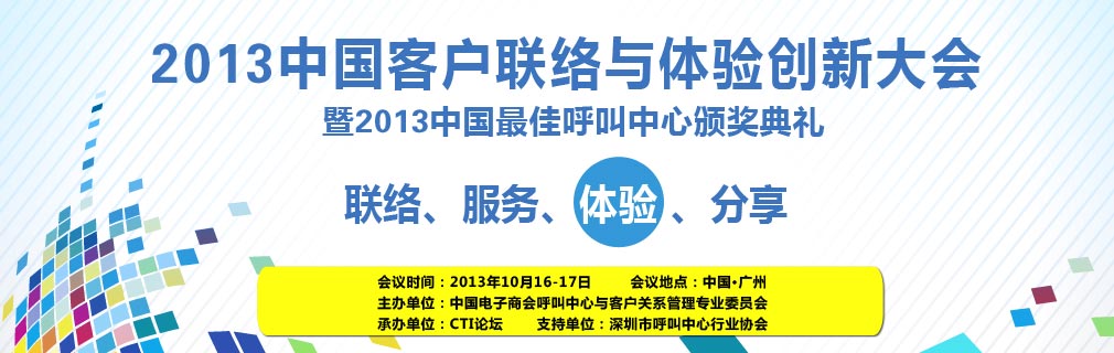 2013中國(guó)客戶(hù)聯(lián)絡(luò)與體驗(yàn)創(chuàng)新大會(huì)暨2013中國(guó)最佳呼叫中心頒獎(jiǎng)典禮 火熱報(bào)名中!