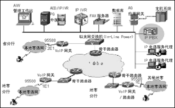 PBX Cisco CallManager 及IP IVR、ICM實現(xiàn)統(tǒng)一的IPIVR和人工座席服務(wù);在省中心呼叫中心增加遠端語音接入的軟件設(shè)備、Cisco