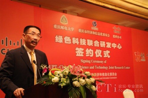 CTI論壇(ctiforum)2月3日消息(記者 潘婷):2月3日上午,思科公司與重慶郵電大學正式簽訂合作協(xié)議,共建“重慶郵電大學-思科綠色科技聯(lián)合研究實驗室”!熬G色科技聯(lián)合研究實驗室”的成立是思科履行其致力于推動中國創(chuàng)新和可持續(xù)發(fā)展承諾的重要舉措。此次合作中雙方將共同推動下一代互聯(lián)網(wǎng)、傳感器網(wǎng)絡以及綠色科技等領域的研發(fā),推進應用推廣和產(chǎn)業(yè)化發(fā)展,實現(xiàn)產(chǎn)學研一體化,幫助和支持重慶本土企業(yè)提高綠色科技創(chuàng)新的素質和能力,進而支持中國發(fā)展綠色經(jīng)濟、節(jié)能減排的長期戰(zhàn)略。