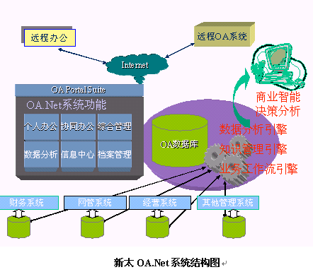 新太OA.Net系統(tǒng)基于最新的B/S三層體系結(jié)構(gòu)開(kāi)發(fā),采用關(guān)系型數(shù)據(jù)庫(kù)(SQL Server,Oracle等)結(jié)合群件系統(tǒng)(Exchange、Domino等)的方式,在保證系統(tǒng)高穩(wěn)定性的基礎(chǔ)上充分發(fā)揮了系統(tǒng)的靈活性?蛻舳嘶跒g覽器,無(wú)需安裝軟件,版本自動(dòng)更新到客戶端,大大降低了系統(tǒng)維護(hù)的難度。