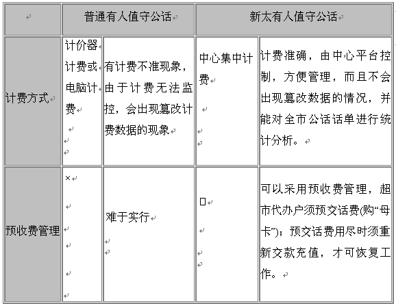 長期以來,普通有人值守公話采用計費器+電話的方式進(jìn)行通話和計費,這種方式的弊端是費率固話在計費器上,費率、時長、話單等都在計費器本地控制,運營商無法了解各公話的計費情況,公話代辦戶不按計價器亂收費、篡改計費器電路以達(dá)到多收費的現(xiàn)象時有發(fā)生,嚴(yán)重侵害消費者利益,由此帶來的大量計費糾紛又影響了運營商聲譽(yù)和管理,集中管理控制有人值守公話勢在必行。