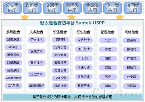 新太融合安防平臺(tái)(SUNTEK-USPP)是基于現(xiàn)代安防和融合通信技術(shù),集海量信息采集、智能分析、精準(zhǔn)處理于一體的國內(nèi)一流,國際領(lǐng)先的安防綜合應(yīng)用管理平臺(tái)。平臺(tái)采用開放的技術(shù)框架,通過對(duì)公共安全領(lǐng)域的信息管理、治安管理、安全防范和應(yīng)急指揮等進(jìn)行系統(tǒng)融合、資源共享和功能聯(lián)動(dòng),實(shí)現(xiàn)人防、物防、技防等各種資源和手段的有效整合,達(dá)到信息共享、資源調(diào)度、決策指揮的高度統(tǒng)一、靈活運(yùn)轉(zhuǎn)和及時(shí)有效。