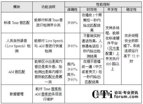 圖中,Tone音匹配采用模式匹配方法,可以實(shí)現(xiàn)對振鈴音,忙音,空號,不可達(dá)音等100多種標(biāo)準(zhǔn)提示音的識別。AM(Answering Machine)音匹配主要負(fù)責(zé)識別傳真機(jī)、自動(dòng)答錄機(jī)等機(jī)器語音,同樣采用模式匹配方法,將收到的語音與標(biāo)準(zhǔn)樣本庫進(jìn)行比對。人類自然語音檢測的功能主要通過人真實(shí)聲音的檢測,來判斷是否需要進(jìn)行語音匹配。