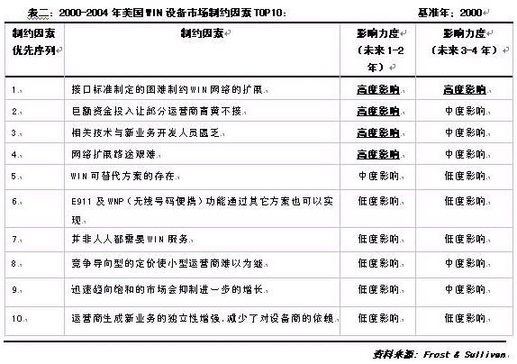 本地或區(qū)域價(jià)格方案在我們預(yù)測(cè)的時(shí)期內(nèi), 將始終是手機(jī)用戶采納的最多的一種方案。 1999年,在美國(guó)有5千7百 萬(wàn),大約70%的用戶是采用本地或區(qū)域方案, 而該方案產(chǎn)生的營(yíng)業(yè)額為274.5億美元, 約占市場(chǎng)總規(guī)模的58.6%。Frost & Sullivan 預(yù)計(jì),到2005年, 46.6%的手機(jī)用戶還會(huì)使用該種方案, 而該方案產(chǎn)生的營(yíng)業(yè)額將為291.2億美元,占市場(chǎng)總規(guī)模的比例將縮至36.1%。