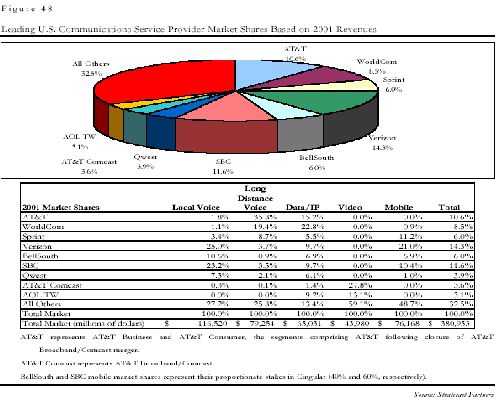 。∑髽I(yè)戰(zhàn)略:在商業(yè)用戶方面,AT&T一邊加緊完善自己的全球接入網(wǎng)絡(luò),如在上海設(shè)立分公司;一邊積極提高自己向商業(yè)用戶提供全面解決方案的能力,AT&T公司新成立的AT&T解決方案部門可以被稱做電信領(lǐng)域的IBM全球服務(wù)公司,在很短的時(shí)間內(nèi),AT&T解決方案部門已經(jīng)發(fā)展到7500人,年?duì)I業(yè)額超過(guò)50億美元,同時(shí)能為商業(yè)用戶在全球范圍提供全面的電信解決方案。
