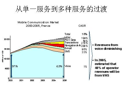 每一個(gè)細(xì)分市場(chǎng)從傳統(tǒng)的基礎(chǔ)服務(wù)逐漸向用戶的應(yīng)用需求靠攏,并以打包的方式向用戶提供解決方案服務(wù),造成增值電信業(yè)務(wù)的價(jià)值鏈越來(lái)越復(fù)雜。同時(shí),用戶的需求主要體現(xiàn)在方便性和娛樂(lè)上,以移動(dòng)增值業(yè)務(wù)為例,歐美的增值業(yè)務(wù)主要是被滿足用戶的方便性、實(shí)現(xiàn)實(shí)時(shí)通訊需求的即時(shí)短信等為主導(dǎo),而亞洲國(guó)家則普遍在以?shī)蕵?lè)功能為主的SMS和移動(dòng)游戲業(yè)務(wù)上潛力巨大。我們應(yīng)該看到,不管以哪種業(yè)務(wù)為主導(dǎo),市場(chǎng)的彈性都普遍增加,市場(chǎng)前景的不確定性增大。其中最顯著的特點(diǎn)為,市場(chǎng)需求不再是恒定的,市場(chǎng)的大小在很大程度上是由運(yùn)營(yíng)商的經(jīng)營(yíng)決定的,與運(yùn)營(yíng)商的業(yè)務(wù)提供方式和促銷的效率密切相關(guān)。這無(wú)疑對(duì)運(yùn)營(yíng)商在新業(yè)務(wù)的市場(chǎng)預(yù)測(cè)、業(yè)務(wù)模式選擇和用戶需求的喚起上提出了更高的要求。