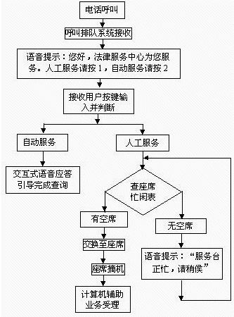 · 外線撥入系統(tǒng)后,如果選擇人工服務(wù),系統(tǒng)將來話與臺(tái)內(nèi)座席接通。值班人員詢問用戶需求,通過座席電腦查詢相應(yīng)法律條文,向用戶提供相關(guān)的法律服務(wù)。