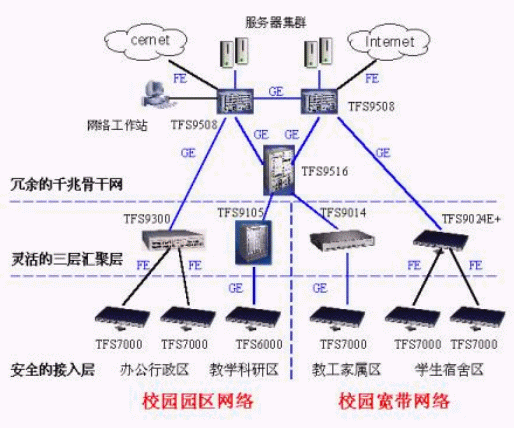 四、清華同方高校寬帶網(wǎng)解決方案: