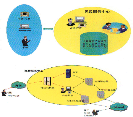 民政社區(qū)服務中心利用CTI技術、網絡技術、數(shù)據庫技術、WEB技術及多種接入方式:電話、呼叫器、傳真、互聯(lián)網、移動互聯(lián)網、手機等,為廣大居民提供便捷、優(yōu)質的社區(qū)服務。