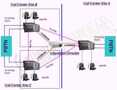 Interaction Director的功能比Interaction Multi-Site還要強(qiáng)大的多,不但支持Interaction Multi-Site的具有的功能外,還支持更大規(guī)模的分布式系統(tǒng)、呼叫前和呼叫后路由(呼叫前路由采用SS7信令,需要電信運(yùn)營商的支持)以及真正的網(wǎng)絡(luò)排隊(duì)機(jī)(Network ACD)等。Interaction Director通常安裝在一臺單獨(dú)的服務(wù)器上,用來決定最佳分布點(diǎn)的系統(tǒng)處理來電。Interaction Director可以實(shí)時監(jiān)控各個分布點(diǎn)的系統(tǒng)負(fù)載,坐席、技能、隊(duì)列等狀態(tài)。采用Interaction Director可以方便的實(shí)現(xiàn)分布式呼叫中心系統(tǒng)的負(fù)載均衡和災(zāi)難備份。舉例來說,在周末話務(wù)量較小的情況下,為節(jié)省資源和運(yùn)營成本,可以將北京中心的所有來電路由至上海中心處理;又如,上海中心發(fā)生故障,可以將所有來電路由至北京中心處理。