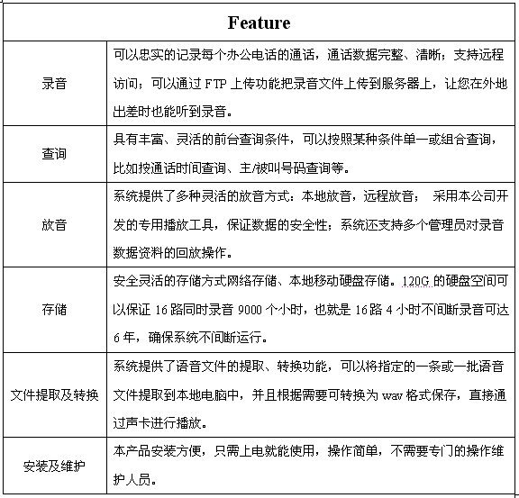 1. 錄音服務(wù)器采用嵌入式(Embedded)Linux操作系統(tǒng),高性能壓縮芯片,語音文件僅為1KB/S,綜合性價(jià)比突出;
