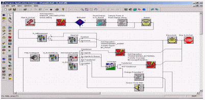 Apropos應(yīng)用程序設(shè)計是一個基于GUI的先進(jìn)的電話PIL版本。呼叫流曲線圖通過放置和連接TeleObjects被建立,在格子之上的圖線代表各種各樣的呼叫流功能。當(dāng)數(shù)據(jù)被保存時,因為PIL代碼,呼叫流的圖線會被自動地產(chǎn)生。然后這個合成的結(jié)果通過在Apropos服務(wù)器上被運(yùn)行來實現(xiàn)改變呼叫處理系統(tǒng)。