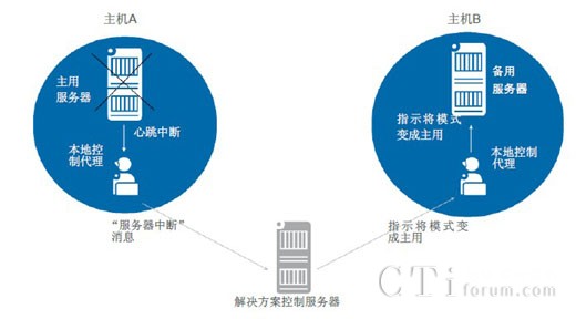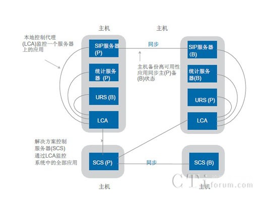 除了提供多個(gè)解決方案組件級(jí)的高可用性之外,高可用性功能也被融入到了管理框架中。圖4作為假設(shè)系統(tǒng)配置顯示了Genesys系統(tǒng)中高可用性管理的幾個(gè)重要方面。通過此類架構(gòu),解決方案控制服務(wù)器(SCS)管理著系統(tǒng)中所有Genesys組件的服務(wù)狀態(tài),包括啟動(dòng)和停止組件以及管理它們的高可用性主/備狀態(tài)等。SCS與本地控制代理(LCA)的多個(gè)實(shí)例共同運(yùn)行。每個(gè)物理主機(jī)上面都安裝有LCA的一個(gè)實(shí)例,用于在SCS與主機(jī)上面安裝的單個(gè)組件之間提供接口。