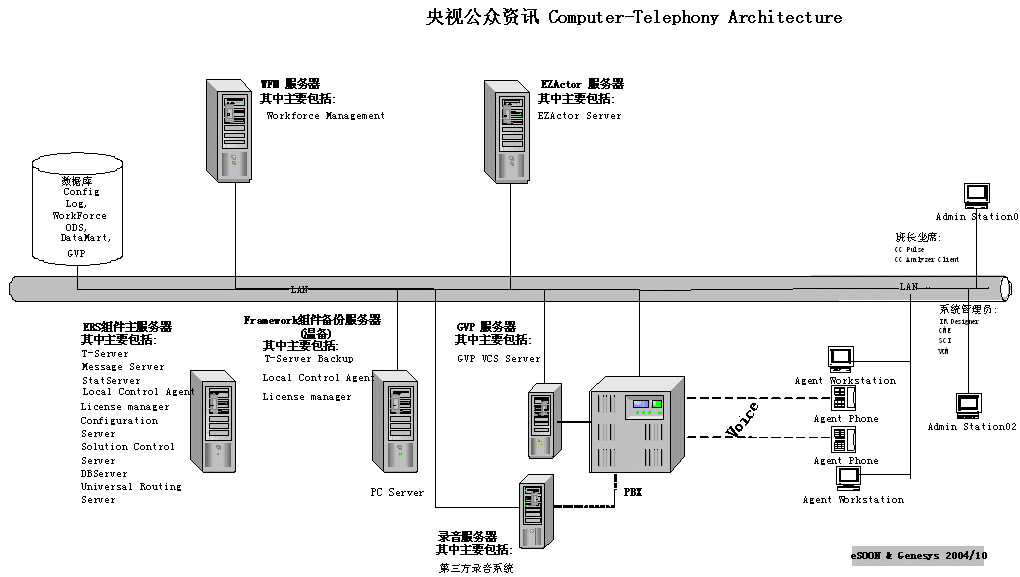 由于簽約時距離2005年春節(jié)聯(lián)歡晚會只有不足2個月的時間,勝利完成春節(jié)聯(lián)歡晚會時的電話服務(wù)工作就成為CCTV公眾資訊中心和eSOON的最大目標(biāo)。因為用戶采用了成熟的eSOON解決方案(CTI-Genesys ERS;IVR-Genesys GVP;CRM-eSOON EZactor),所以整個系統(tǒng)在短短一個月內(nèi)就完成了上線工作。在經(jīng)過詳細的測試及全面的人員培訓(xùn)后整個系統(tǒng)經(jīng)受住了春節(jié)聯(lián)歡晚會的考驗,圓滿完成了晚會的電話、短信的支撐工作。徹底擺脫了前幾年系統(tǒng)不堪應(yīng)付突發(fā)大量呼叫的窘境,提升了CCTV公眾資訊有限公司的服務(wù)品質(zhì)。