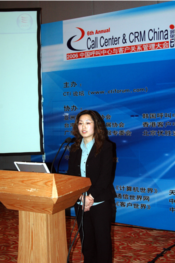 2006年4月3日至5日,2006中國(guó)呼叫中心與客戶(hù)關(guān)系管理大會(huì)在北京國(guó)際會(huì)議中心隆重召開(kāi),以下是億迅(中國(guó))最佳商業(yè)模式咨詢(xún)顧問(wèn)經(jīng)理孫莉?qū)n}演講實(shí)錄: