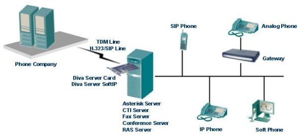 Asterisk IP PBX與Diva Server結合就能夠實現(xiàn)IP PBX與呼叫中心完美結合的一體化解決方案,該方案結合了IP網(wǎng)的靈活性及Eicon