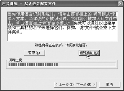 麥克風(fēng)設(shè)置完成以后,系統(tǒng)會(huì)進(jìn)行語(yǔ)音識(shí)別的訓(xùn)練。首先要求您確認(rèn)一些聲音基本信息,接著點(diǎn)擊“下一步”,系統(tǒng)給出一個(gè)例句,您可以點(diǎn)擊“示例”按鈕聽(tīng)一聽(tīng)?wèi)?yīng)該如何朗讀這樣的句子。之后,再次點(diǎn)擊“下一步”就可以開(kāi)始語(yǔ)音訓(xùn)練了。