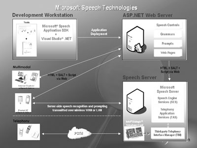 在過去很長一段時間內(nèi),語音應(yīng)用在很大程度上都只是實驗室中純技術(shù)性的東西。而現(xiàn)在語音技術(shù)正逐漸成為企業(yè)應(yīng)用中的重要一環(huán),在銀行、證券、教學(xué)、電信增值應(yīng)用、企業(yè)客戶服務(wù)、企業(yè)內(nèi)部應(yīng)用等領(lǐng)域都擁有廣泛的應(yīng)用前景。在當(dāng)今的語音應(yīng)用技術(shù)中,基于Web的語音應(yīng)用是一個新的發(fā)展前端。IBM、微軟等公司都提供了自己的基于Web的語音平臺。那么什么是基于Web的語音平臺?它的核心技術(shù)是什么?應(yīng)用前景如何?本文作者將結(jié)合微軟Speech Server 2004為大家做簡要剖析。