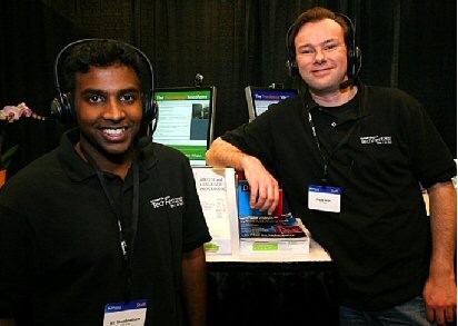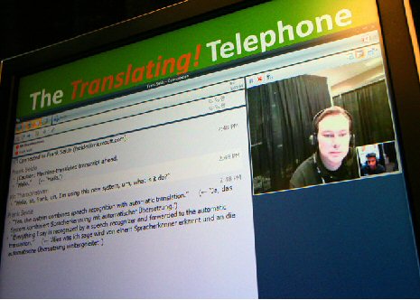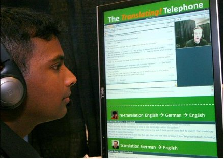 Thambiratnam說:“當多種不同背景的人需要一起交流時,我們的技術(shù)就能提供非常大的便利!盩hambiratnam用同聲傳譯電話展示了這樣一種的情景:Thambiratnam說英語,他要給他的德國籍經(jīng)理Frank
