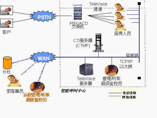 遠程家庭辦公雇員支持:錄音裝備和家庭辦公雇員個人電腦之間,通過專用線、ADSL 或 ISDN 等, 甚至把在家進行的通話內容存放到總部的服務器中做錄音保存和控制