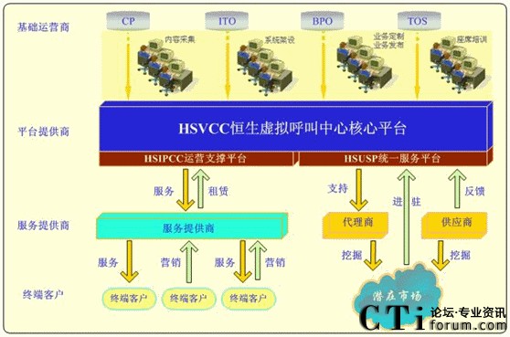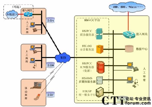 然而,BPO市場的高速發(fā)展也對呼叫中心的技術實現和成本控制提出了更高的要求,傳統(tǒng)的板卡、一體化、PBX呼叫中心在BPO產業(yè)基地的應用中顯得無力,高成本的硬件投資、集中式的架構模式、單一的電話服務與高昂的后期擴容成本嚴重地制約了BPO產業(yè)的發(fā)展,特別是無法高性價比的滿足BPO分布部署模式,對提高運營效能更是沒有任何競爭優(yōu)勢。而基于純交換的第四代IP呼叫中心HSIPCC非常符合BPO業(yè)務模式。