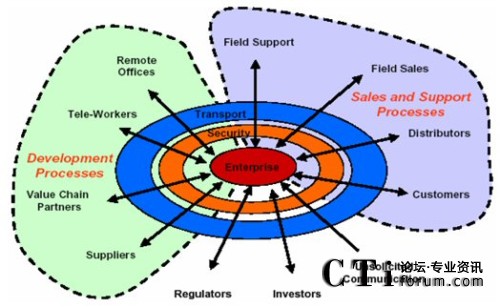 不同公司,生辰八字不同,發(fā)家史不同,決定了企業(yè)利益戰(zhàn)略點(diǎn)的不同,對統(tǒng)一通信的市場切入點(diǎn)和定位目標(biāo)就存在一些差異。軟件商采用以桌面軟件為基礎(chǔ),從上往下滲透的策略,設(shè)備商采用從基礎(chǔ)架構(gòu)出發(fā),從下往上突破的策略,但對統(tǒng)一通信的基本認(rèn)識可統(tǒng)歸為:以用戶為中心,實(shí)現(xiàn)跨時(shí)空的無限溝通。這里拋棄了網(wǎng)絡(luò)、終端、融合、平臺等技術(shù)層面的東西,而是完全從業(yè)務(wù)層面迎合了企業(yè)客戶的基本需求,企業(yè)聽到了自然心動!耙赂幌刃蘼贰,企業(yè)要發(fā)展,就必須先修好這條通信大道。從中,我們也可看出統(tǒng)一通信不是一種技術(shù),也不是一項(xiàng)應(yīng)用,而是一種需求、一種企業(yè)對網(wǎng)絡(luò)、通信技術(shù)成熟發(fā)展之后的需求滿足的期望。此外,通過對這些主要廠家的UC解決方案進(jìn)行分析,也可以發(fā)現(xiàn),無論大家的口號怎樣,PPT里的網(wǎng)絡(luò)架構(gòu)如何多變,卻一致地采用SIP協(xié)議進(jìn)行會話控制,用IP協(xié)議進(jìn)行數(shù)據(jù)傳輸,通過應(yīng)用服務(wù)器(或類似網(wǎng)元)提供各種統(tǒng)一通信功能。