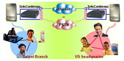 TeleConference可以與交換機充分整合,不同區(qū)域的會議參加者,可以分別在local串接起來后,再透過一條外線連接另一地的電話會議,只需占用一條外線資源,避免造成外線占線的情況。TeleConference可以與網(wǎng)絡電話界面做整合,將國際長途電話透過Internet來傳送,省下可觀的長途電話費用。