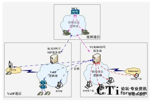 強(qiáng)大的系統(tǒng)融合能力:可以與傳統(tǒng)H.323的電視電話會(huì)議系統(tǒng)互通,以較低的成本把電視電話會(huì)議的音視頻延伸至基層;還可以與傳統(tǒng)的IP電話網(wǎng)融合,使用戶通過PSTN電話也能訪問協(xié)同服務(wù)器,隨時(shí)隨地實(shí)現(xiàn)音頻參加會(huì)議。