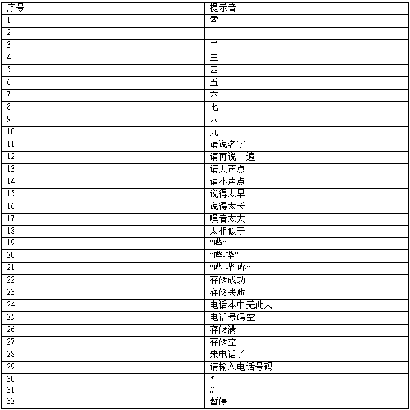 1-人名訓(xùn)練 2-人名識(shí)別 3-語音電話本 4-語音合成 5-控制功能 6-調(diào)試 7-DTMF 8-音樂 9-實(shí)時(shí)錄音/回放 10-來電播報(bào)