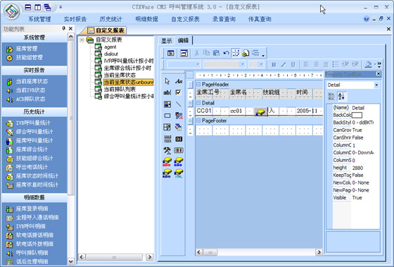 CMS是有效的對呼叫中心進行監(jiān)視和管理的系統(tǒng)。它可以實時監(jiān)控整個呼叫中心的當前數(shù)據(jù),按照座席、技能組、中繼線、隊列、路由進行監(jiān)視,查看座席服務狀態(tài)及接通率各種指標,通過各項實時記錄和歷史記錄向用戶提供多種綜合分析報告和統(tǒng)計報告。其所生成的上百張報表,可以協(xié)助企業(yè)有效管理資源,檢查成本,預測改善現(xiàn)有運作的潛在需求。并提供圖表顯示,生成Excel文檔進行再編輯,或者通過標準的報表形式進行編輯。支持自定義報表。