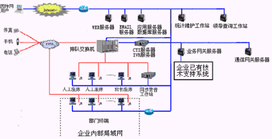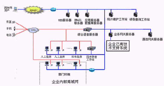 網(wǎng)上服務系統(tǒng):與INTENET結(jié)合,接受來自網(wǎng)上的呼叫請求,提高服務和營銷的質(zhì)量和效率。