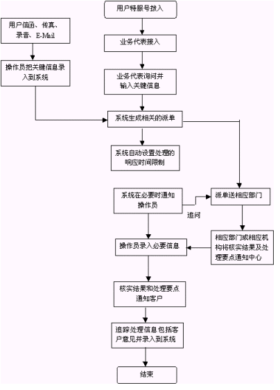 本系統(tǒng)能夠?qū)?shù)據(jù)庫中每天收到的的各種類型的信息進行整理后供查詢,或?qū)⑿畔⒌慕y(tǒng)計報表和其他的各種信息匯總輸出,上報給相關(guān)部門或領(lǐng)導(dǎo)。各相關(guān)部門調(diào)查處理結(jié)果和答復(fù)意見出來后,再由座席話務(wù)人員通知到本人。也可由系統(tǒng)自動撥通聯(lián)系電話,由系統(tǒng)通過傳真或電腦語音自動播報調(diào)查處理結(jié)果和答復(fù)意見來完成回饋。