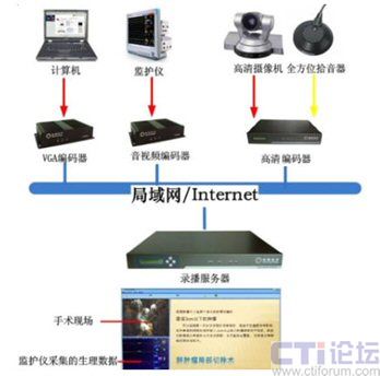 銳取遠(yuǎn)程醫(yī)療系統(tǒng)前端視音頻編碼器將采集到的手術(shù)室監(jiān)護(hù)儀的信號進(jìn)行實時編碼和壓縮,通過網(wǎng)絡(luò)傳送給多媒體錄播系統(tǒng)遠(yuǎn)程醫(yī)療系統(tǒng)后臺服務(wù)器上。