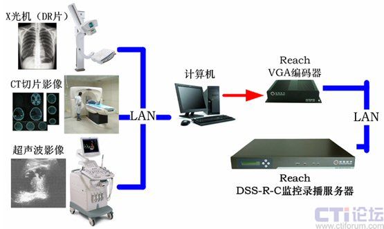 - 由于當(dāng)前的大多醫(yī)療設(shè)備,如X光機(jī)、CT機(jī)均擁有網(wǎng)絡(luò)接口并支持,由計算機(jī)通過網(wǎng)絡(luò)即可采集醫(yī)療設(shè)備中的影像,并采用VGA編碼器采集計算機(jī)中的CR或DR片、CT片、演示文件(PPT、WORD、EXCEL);