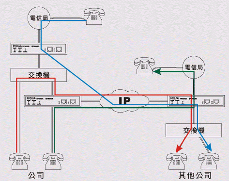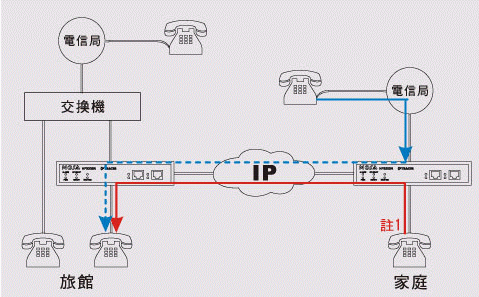 在旅館里亦可利用公司FONEMOSA遠易通撥出電話及收聽語音信箱 將FONEMOSA遠易通在旅館房間裝設(shè)好后,可以在旅館里免費使用各地分公司交換機所有功能,撥接電話就像在辦公室一樣,也可以撥接其它同仁分機電話,或者聽取語音留言,舉凡各類公司交換機功能,在旅館里都一樣可以使用。(圖標: On-Net Call 網(wǎng)內(nèi)互打, 紅色線路)