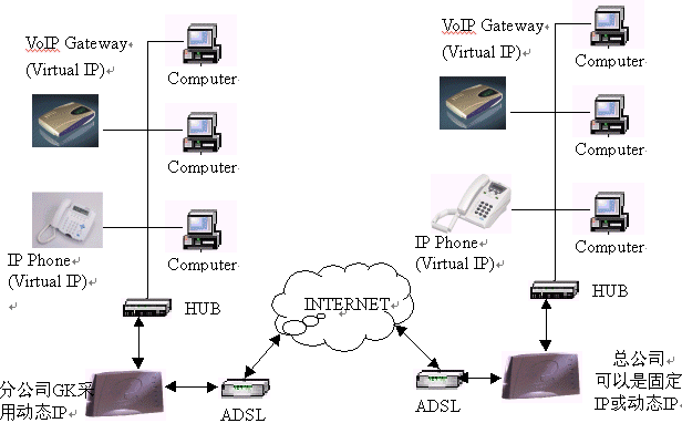二、應(yīng)用說(shuō)明:完全基于企業(yè)現(xiàn)有網(wǎng)絡(luò)環(huán)境架設(shè)VOIP系統(tǒng),企業(yè)的各分支機(jī)構(gòu)只需申請(qǐng)ADSL寬帶網(wǎng)絡(luò)(有條件的企業(yè)可申請(qǐng)專(zhuān)線(xiàn)及固定IP地址,則系統(tǒng)完全獨(dú)立),安裝晶卡開(kāi)發(fā)的NOZA網(wǎng)守、IP話(huà)機(jī)或USB手柄電話(huà),就可實(shí)現(xiàn)免費(fèi)通話(huà)。