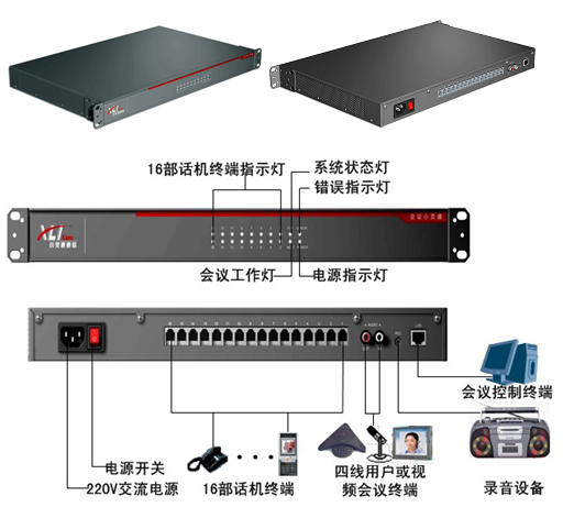 系統(tǒng)提供一個網口,可方便連接計算機;針對各個行業(yè)用戶特殊需求,系統(tǒng)提供一個四線模塊,可連接四線終端、視頻設備、其他會場設備或用于雙系統(tǒng)級聯(lián);通過聯(lián)網的計算機,系統(tǒng)即可獨立使用,也可與計算機協(xié)同使用;系統(tǒng)還提供錄音機接口,可通過錄音機或計算機進行會場錄音。