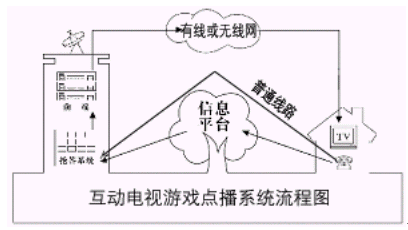 從信息高速公路的理論講,雙向?qū)拵ЬW(wǎng)會(huì)給我們的生活帶來(lái)革命性的變化。由于客觀條件的限制,我國(guó)目前無(wú)論是電信網(wǎng),還是電視網(wǎng)都沒(méi)能實(shí)現(xiàn)寬帶雙向服務(wù),但是無(wú)論是電視網(wǎng),還是電信網(wǎng),本身都相當(dāng)完善,所以我們完全可以通過(guò)一定的技術(shù)手段將電信網(wǎng)與電視網(wǎng)有機(jī)的結(jié)合起來(lái),發(fā)揮信息平臺(tái)優(yōu)勢(shì),讓電視互動(dòng)起來(lái),從而能夠在現(xiàn)有的條件下開(kāi)展新的業(yè)務(wù)。互動(dòng)電視游戲點(diǎn)點(diǎn)播系統(tǒng),它就是用電信網(wǎng)傳遞上行信號(hào),用電視網(wǎng)傳遞下行圖像,利用寬帶網(wǎng)的原理使電視互動(dòng)了起來(lái)。