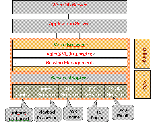 采用面向?qū)ο蠓治龊驮O(shè)計,基于VoiceXML的規(guī)范,使系統(tǒng)具有靈活的體系結(jié)構(gòu)和便捷的可視化業(yè)務(wù)生成環(huán)境。