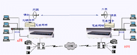 IP語音網關2臺;PBX或電話機的配置可根據(jù)用戶實際需求;無線網橋2臺;無線網卡2塊;天線兩套;饋線若干。 此方案亦可應用于兩個需要連接的局域網之間有障礙物遮擋而不可視的情況。此時只需在水平或垂直方向尋找一個能同時看到A與B的位置,并在此位置加入中繼網橋,即可實現(xiàn)A網與B網的連接。實際應用中,設置各異地IP語音網關的對應代碼,在PBX上設定代表撥打IP電話的數(shù)字,代表PSTN外線電話的數(shù)字。此無線組網方式其實就是已有企業(yè)網的方式,可以完美解決特定地區(qū)布線的困難。特別是廣東地區(qū),工廠特別多,發(fā)展也特別快。有非常多的客戶可以用這種方式來滿足數(shù)據(jù)傳輸及VOIP的需求。