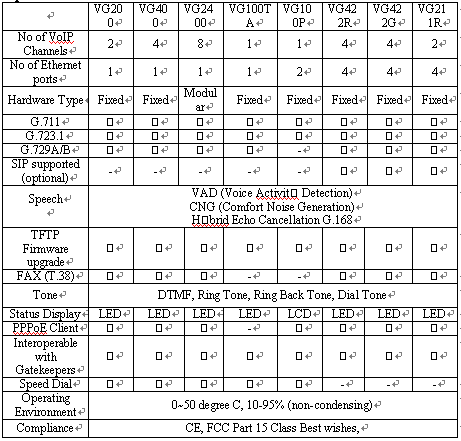 VG400VOIP產品主要性能、特點: