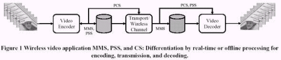 雖然新的服務(wù)如多媒體廣播/組播服務(wù)(MBMS)是未來無線網(wǎng)絡(luò)的發(fā)展計劃,但我們被約束成單一的應(yīng)用程序接受者。移動手持設(shè)備受處理器速度和存儲容量的限制,因此,移動視頻編碼的設(shè)計必須以最低復(fù)雜度和最高效率為目標。正如其它文章所討論的復(fù)雜問題一樣,我們將自己約束在傳輸和工具上。以上三點定義的應(yīng)用可以在預(yù)定的的傳輸帶寬里面,最大限度地允許端到端的時延,在不同的系統(tǒng)結(jié)構(gòu)有不同的結(jié)果,一個簡單的圖示如圖一。