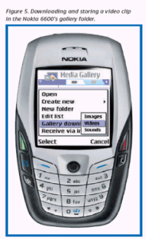 MMS正在步入一個高級功能發(fā)展階段,其中包括信息表達能力、視頻和內(nèi)容的保護能力。諾基亞認為,由于用戶需要利用他們的個人移動終端去采集和發(fā)送視頻信息,因此用戶需要移動視頻服務。這種服務就是將用戶購買或免費獲贈的內(nèi)容發(fā)送的用戶的終端上。移動用戶也可以通過其它途徑來觀看視頻節(jié)目,包括通過瀏覽器進行視頻下載和流式播放。這兩種方式都有各自的優(yōu)點,例如,視頻下載允許用戶選擇、本地存儲或回放視頻節(jié)目,而流式播放則可以讓用戶實時播放尺寸較大的視頻節(jié)目。