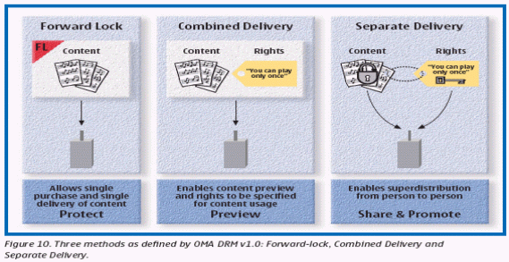 標準提供了三種DRM模式:Forward-lock,Combined Delivery和Separate Delivery。