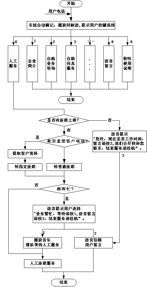 ·用戶撥入系統(tǒng)后,用戶根據(jù)語(yǔ)音提示按鍵選擇業(yè)務(wù)功能。由IVR交互式語(yǔ)音應(yīng)答完成自助 式業(yè)務(wù)查詢、業(yè)務(wù)查詢等聲訊服務(wù)。如需人工服務(wù),按0隨時(shí)轉(zhuǎn)人工接通座席,以減輕人工服務(wù)壓力。
