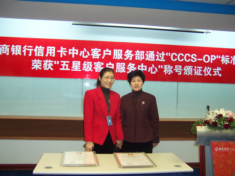 這天的上午10點(diǎn)30分,在招商銀行信用卡中心上海總部舉行了簡(jiǎn)約而隆重的頒證儀式,信用卡中心常務(wù)副總經(jīng)理梁瑤蘭從信息產(chǎn)業(yè)部電子信息中心副主任、中國(guó)信息化推進(jìn)聯(lián)盟秘書長(zhǎng)劉獻(xiàn)軍手中接過證書,標(biāo)志著國(guó)內(nèi)第一家五星級(jí)客戶服務(wù)中心誕生了!