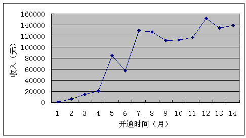 還是說(shuō)回來(lái)。河北鐵通這個(gè)業(yè)務(wù)從60線開(kāi)始穩(wěn)健起步,如圖所示,在3個(gè)月的磨合時(shí)間里,它主要依靠口碑傳播,每個(gè)月才兩萬(wàn)元的收入,業(yè)務(wù)雖然開(kāi)始贏利,但是并不可觀,怎樣才能快速提升業(yè)務(wù)價(jià)值?